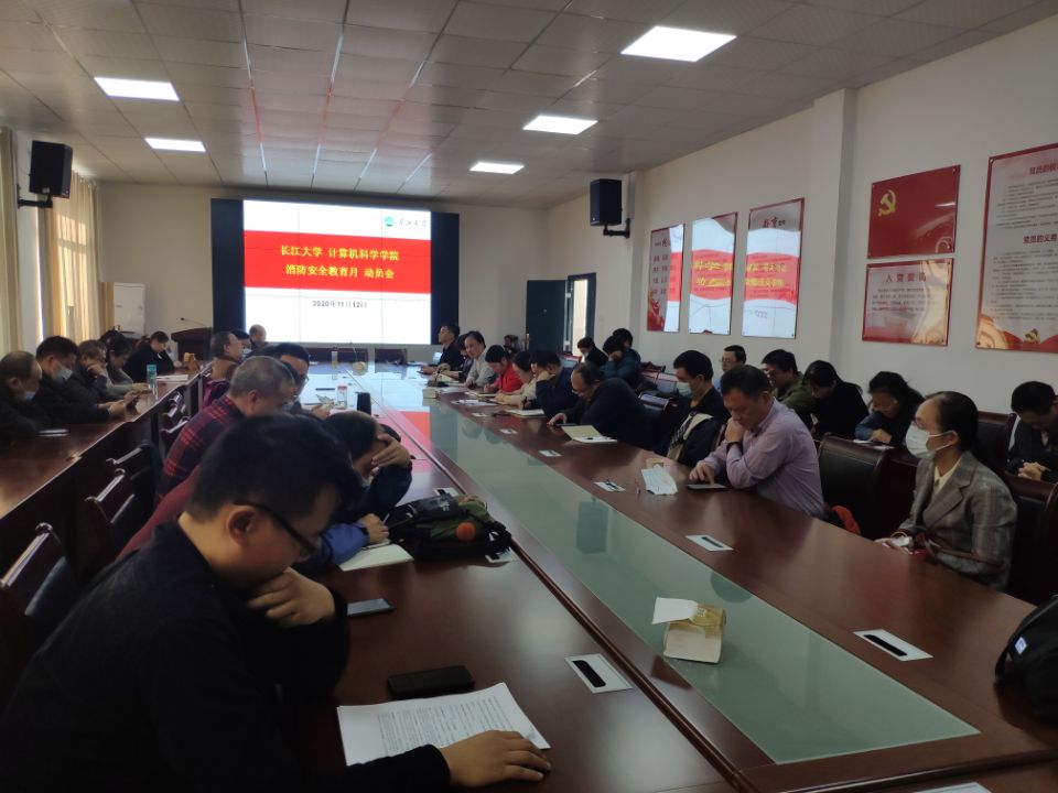 根据长江大学消防安全教育月活动的统一布署,计算机科学学院于2020年11月12日下午4点, 在5教501会议室召开了计算机科学学院消防安全教育月宣传动员会,同时进行了学生宿舍消防安全大检查活动的布置会,全体院领导、全院教职工参加了此次会议。