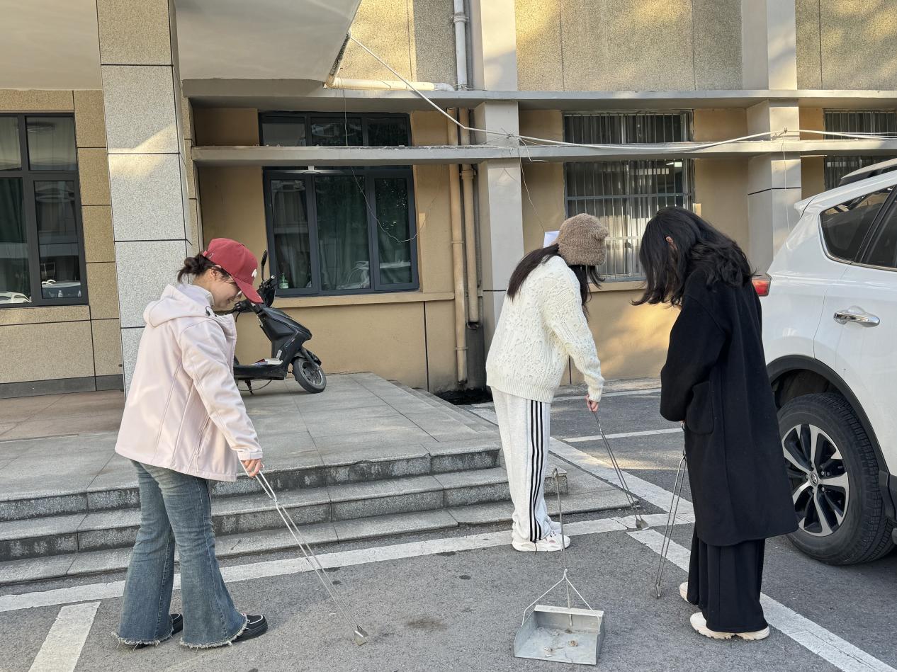 在学院负责老师的带领下,同学们手拿工具,分工明确,热情投身于清扫工作中,用实际行动维护校园秩序。