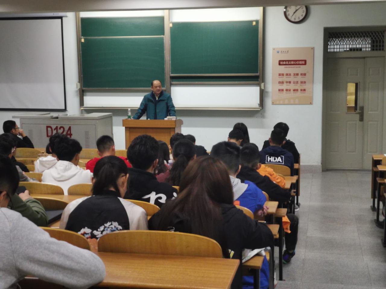 2019年11月7日晚7点,计算机科学学院党委书记高明成同志在13教D124进行了以“坚定理想信念 做对党忠诚为党尽责的合格党员”为主题的专题党课讲授活动。我院本科生和研究生中思想积极要求进步申请入党的优秀学生、入党积极分予以及预备党员参加了本次的党课学习。