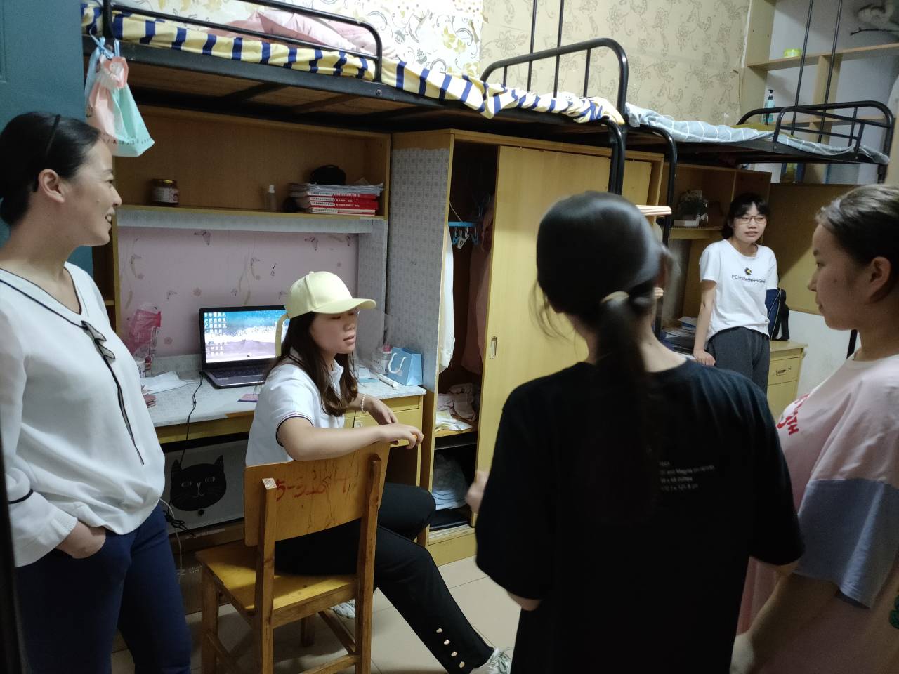 黄群俊书记协辅导员前往汉科5栋,走访女生宿舍,宿舍的姐妹花们见到黄书记前来为她们送别,感到意外的同时倍感亲切,即将离开陪伴自己走过大时光的老师,同学们向黄书记述说着自己的不舍,天下无不散之宴席,面对同学们的依依不舍,黄书记送上自己最真挚的祝福,深切祝愿同学们工作顺利、学业有成。