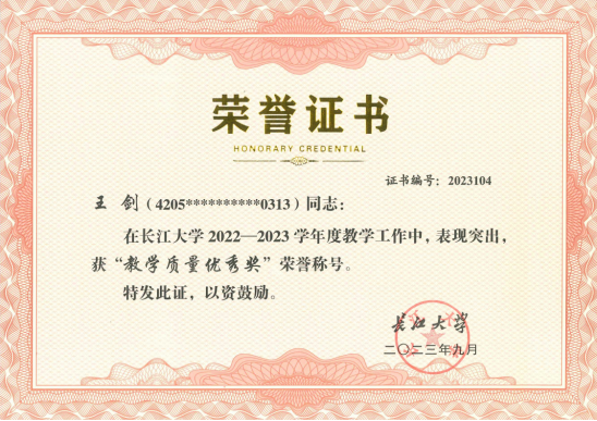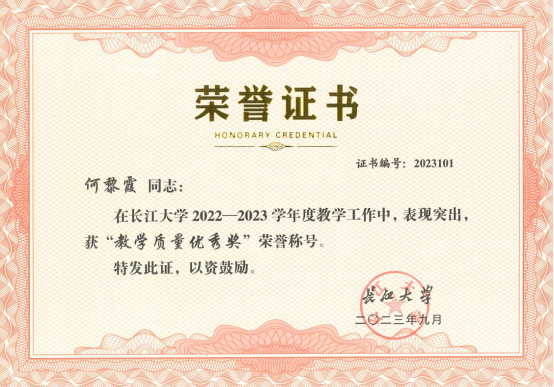 王桃群、何黎霞、黄岚、李梦霞、王剑、叶青等6位老师荣获2022-2023年“教学质量优秀奖”荣誉称号