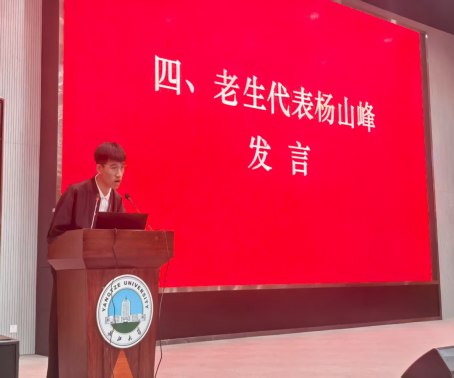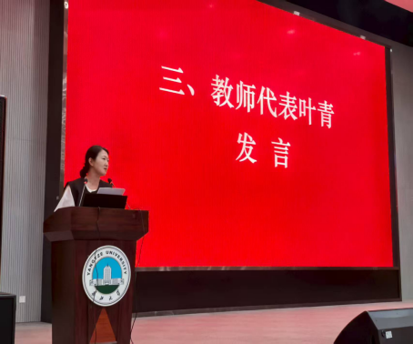 教师代表叶青副教授结合多年教学科研经验,强调“热爱与坚持”的重要性。她鼓励同学们主动探索专业兴趣,以内在动力克服学业挑战,及时巩固课堂知识,注重日常积累,不断提升学科素养与技术能力,并常怀感恩之心,珍惜身边师长与同窗情谊。