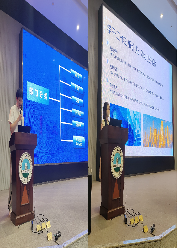 2023级学生干部汪智、苑舒彤则聚焦“学生工作与学业平衡”这一核心困惑,通过班级管理难题破解、校园活动组织实操等真实案例,传递“在责任中成长,以服务促提升”的理念,既解答了新生的疑虑,更激发了大家参与校园建设的热情。