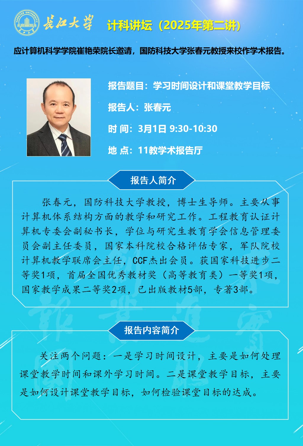 计科讲坛(2025年第二讲):学习时间设计和课堂教学目标