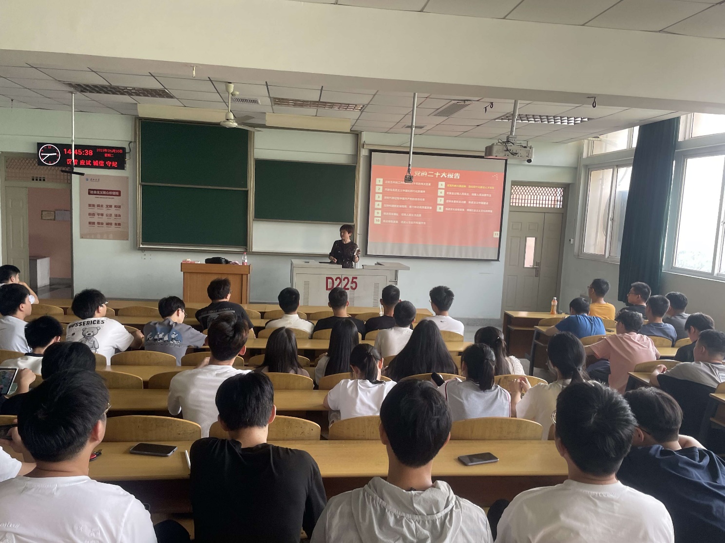 6月20日下午在13教D225,计算机科学学院院长崔艳荣以《从ChatGPT人工智能看科技创新》为题作形势与政策报告,学院全体一年级研究生参会。