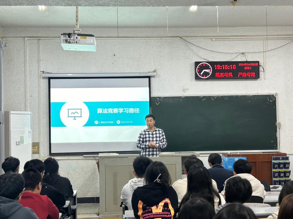 4月2日,计算机科学学院举办了一场别开生面的竞赛讲座,旨在激发学生们对竞赛的热情,提升大家的算法和编程能力。本次讲座由辅导员郭帅主持,学院主管教学副院长陈中举老师参会。